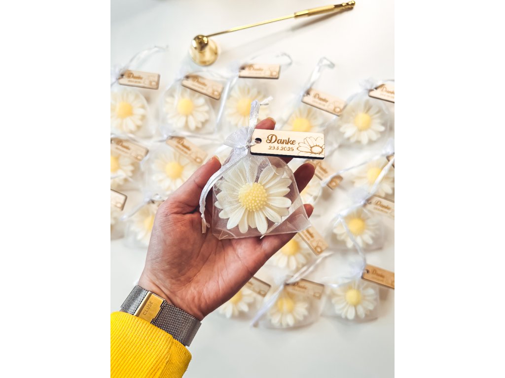 Ak hľadáte vhodný kvet na blahoželanie k narodeninám pre ženu, doplnok, ktorý ozdobí vianočný darček alebo valentínsky darček, vhodnou voľbou je aj sviečka Margarétka zabalená v darčekovom vrecúšku z organzy. Sójové sviečky sú tiež vynikajúcim nápadom na svadobné darčeky pre hostí. Obdarovaní ich iste radi využijú ako dekorácie aj sviečky.